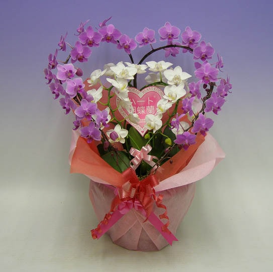 ハート胡蝶蘭 ミディタイプ 紅白 ダブルハート(外ピンク)